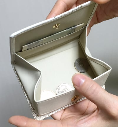 小銭の出し入れがしやすい、大きく開く箱まち型です。