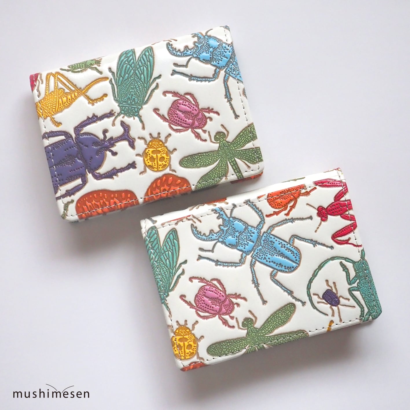 虫アートディレクタームシメセンが日本の昆虫たちを描きデザインした「日本の昆虫シリーズ」の両面小銭入れ(マルチカラー)です。