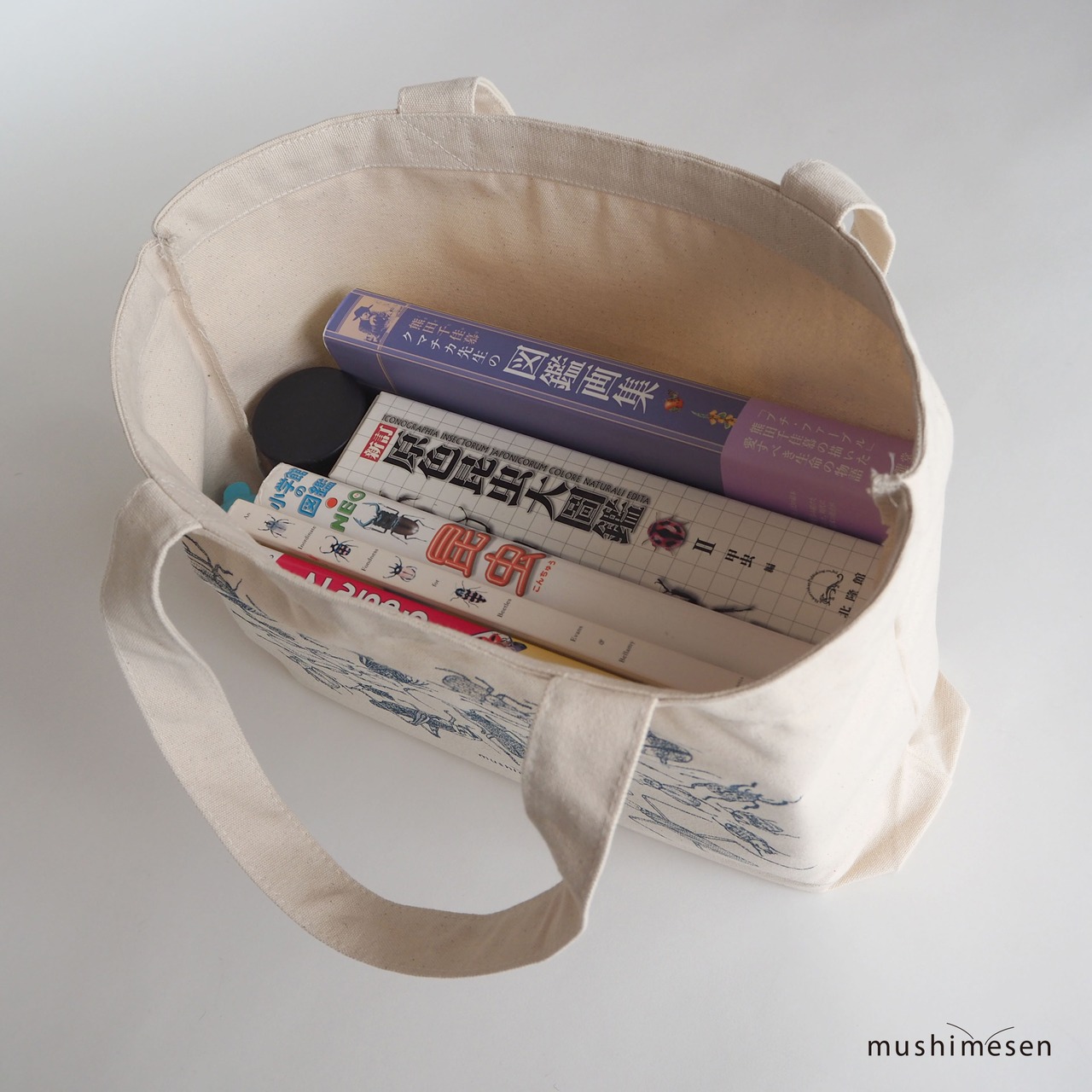 文庫革「日本の昆虫シリーズ」で使用したイラストをリデザインした大きめサイズのトートバッグです。