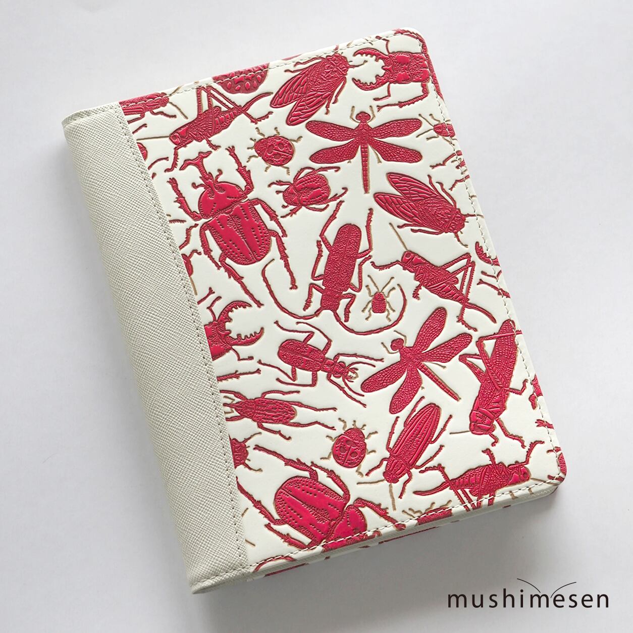 文庫革「日本の昆虫シリーズ」B6サイズ手帳カバー(ノートカバー)アカ